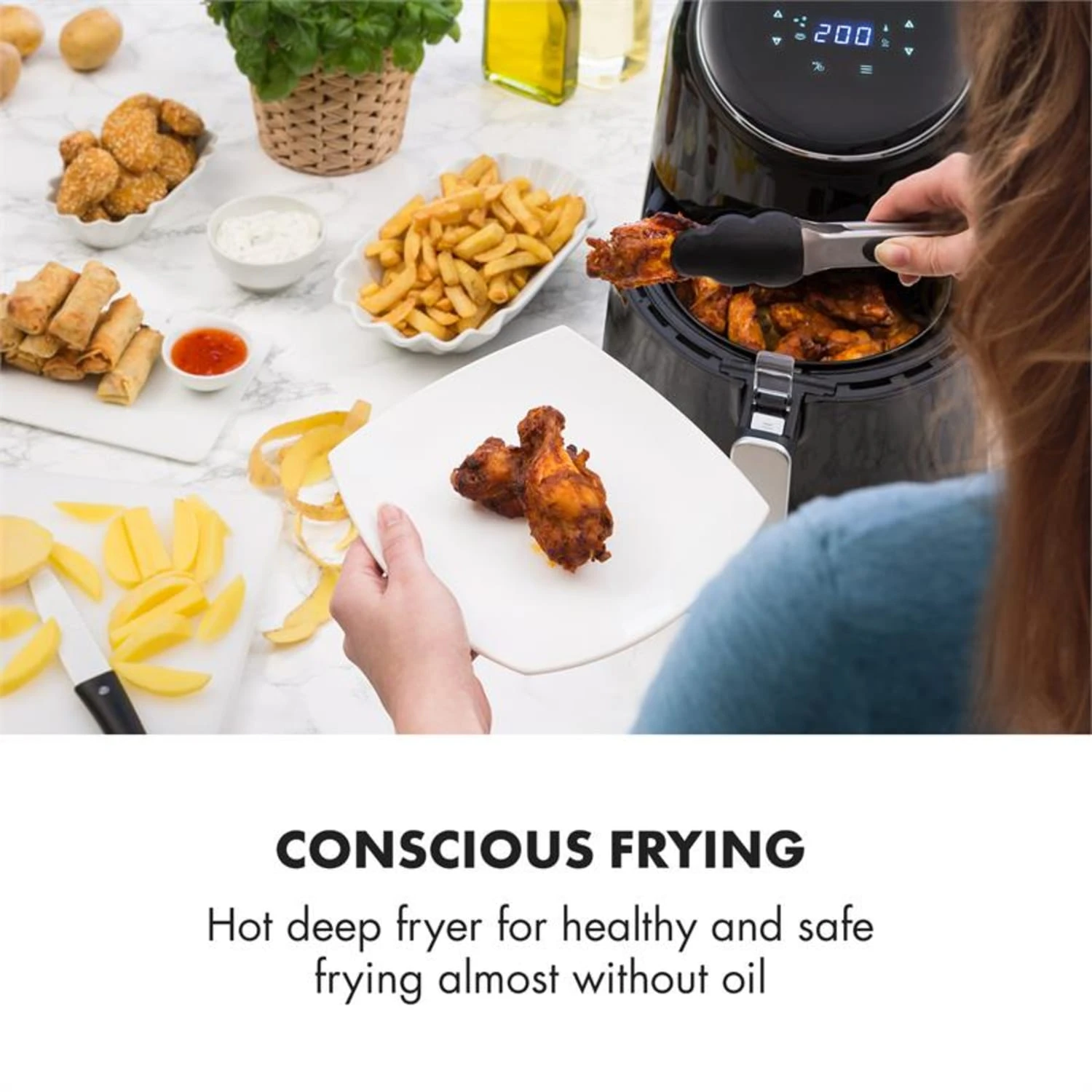 AirVital Heißluftfritteuse 1300W 2,5l CeraPlus-Antihaft Touch Schwarz