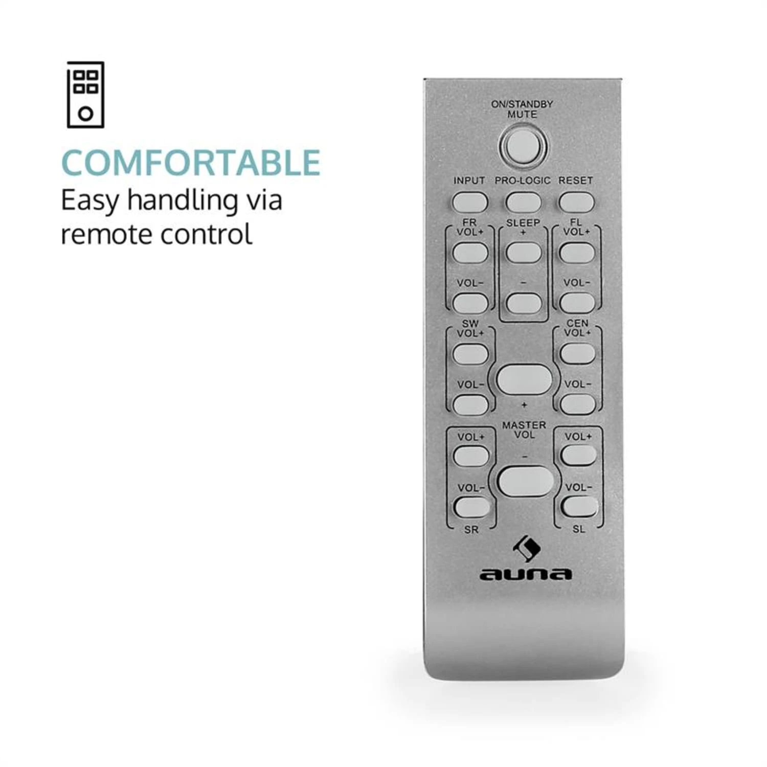 - Maße Subwoofer: ca. 16,5 x 32 x 34 cm (BxHxT)