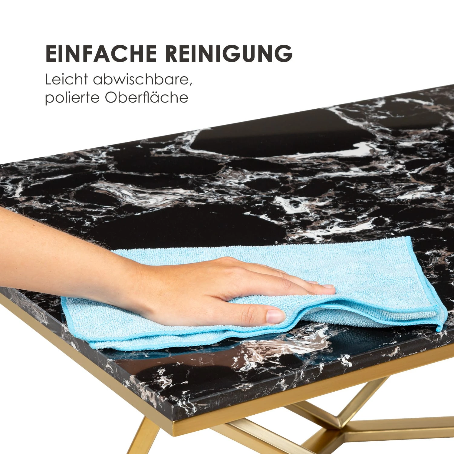 - Tischplatte: schwarzer Marmor