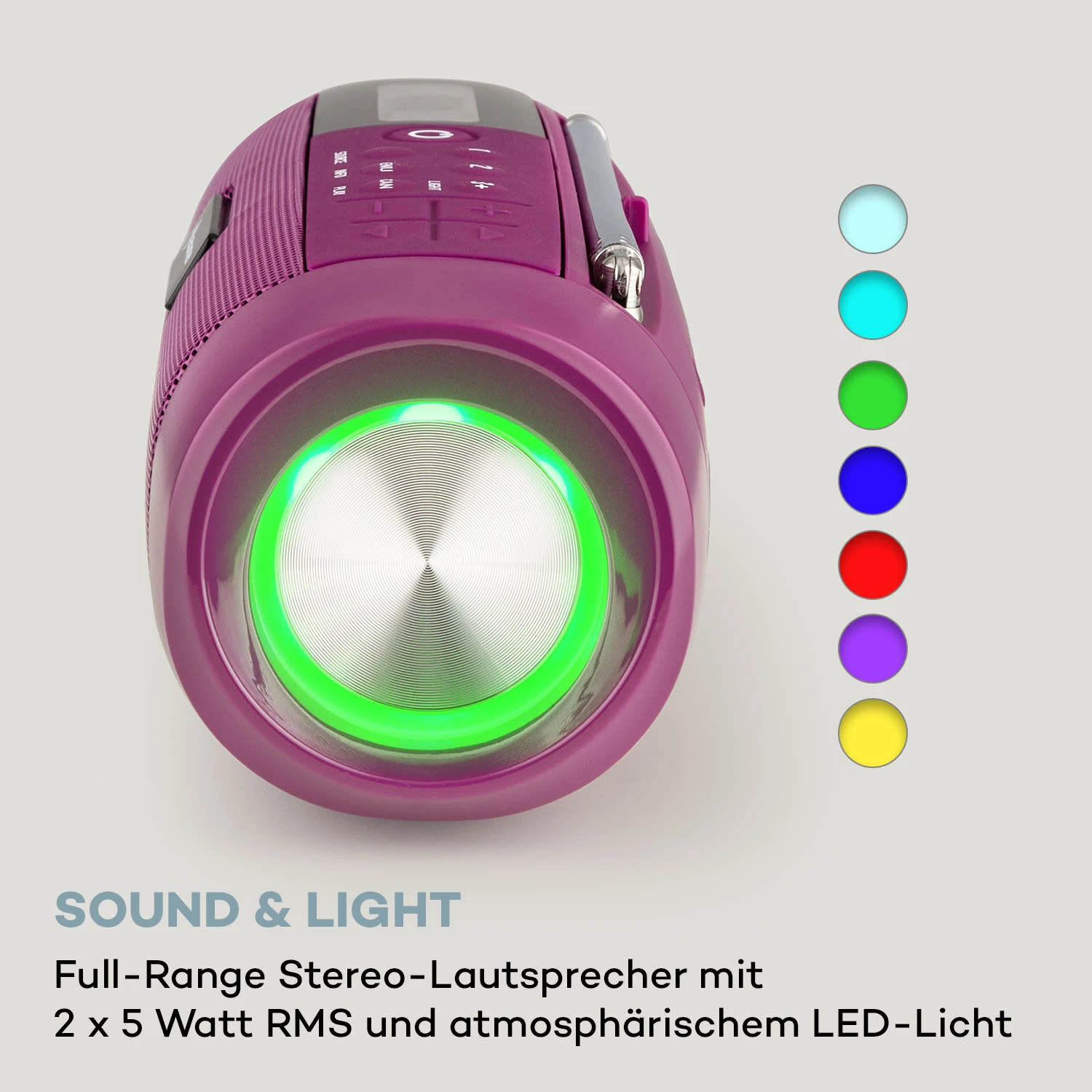Get the party started – egal wo du bist. Mit dem auna Blaster DAB Boombox-Bluetooth-Lautsprecher hast du deine Musik immer dabei.