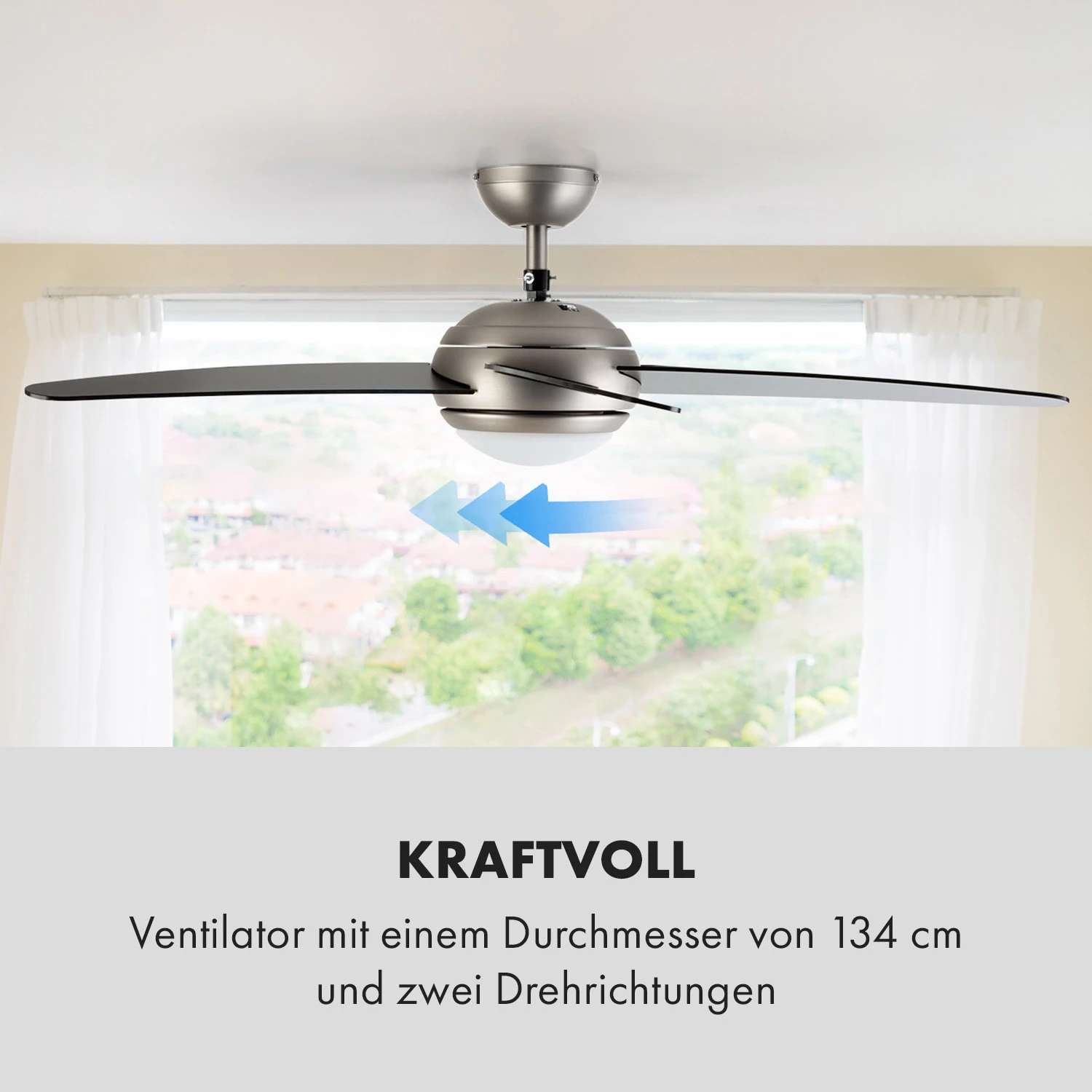 Bolero 2-in-1-Deckenventilator 134cm Leuchte 55W Fernbedienung Schwarz