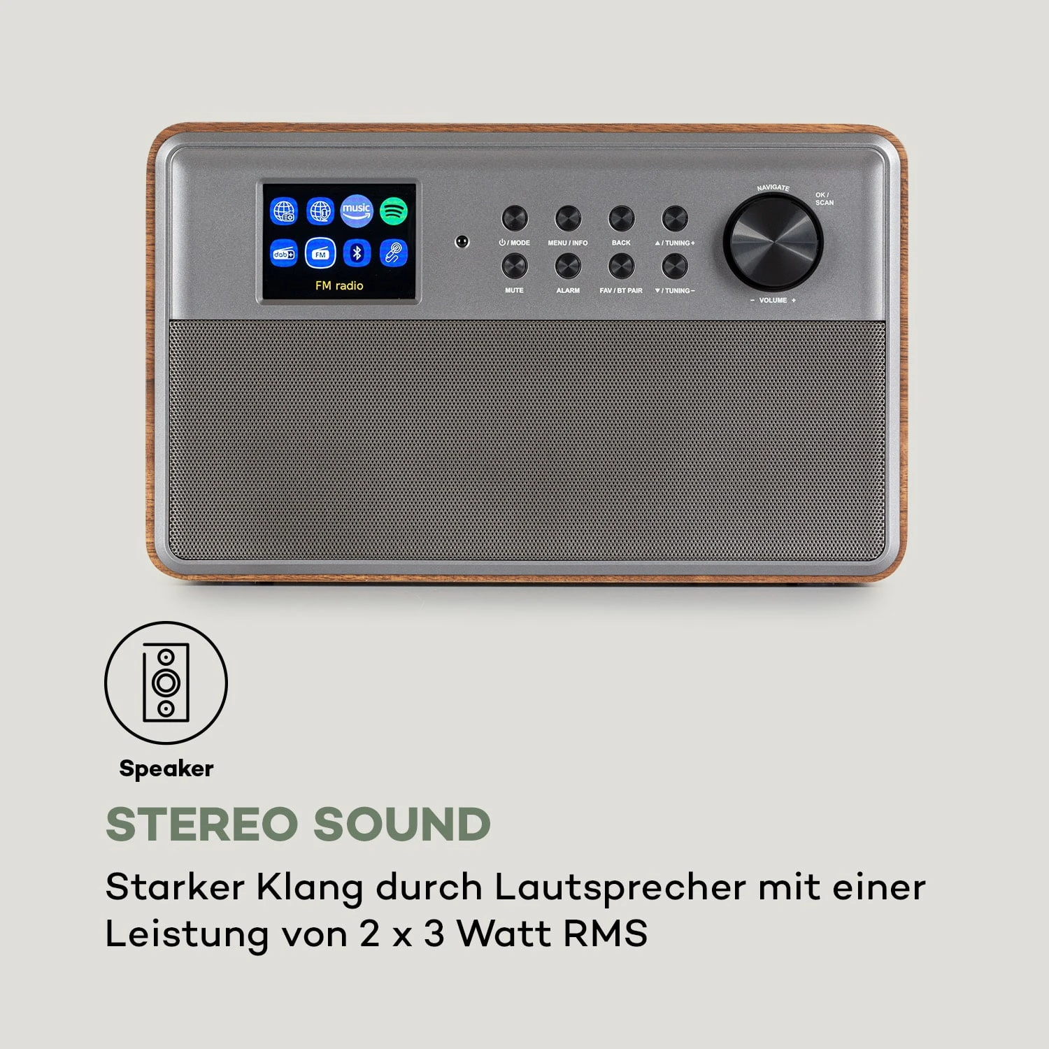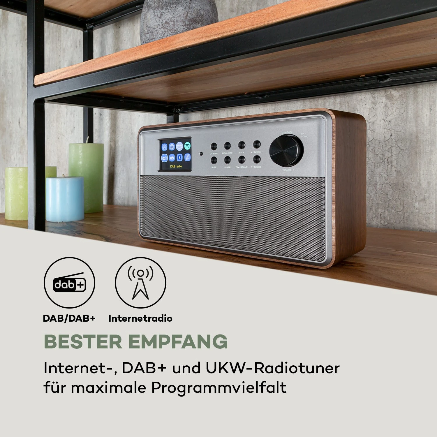 Komme mit dem auna Connect Link in den Genuss eines leistungsfähigen, eleganten und hochwertigen Smart Radios, das dank Spotify Connect und Amazon Music für ein unendliches Streaming-Vergnügen sorgt.