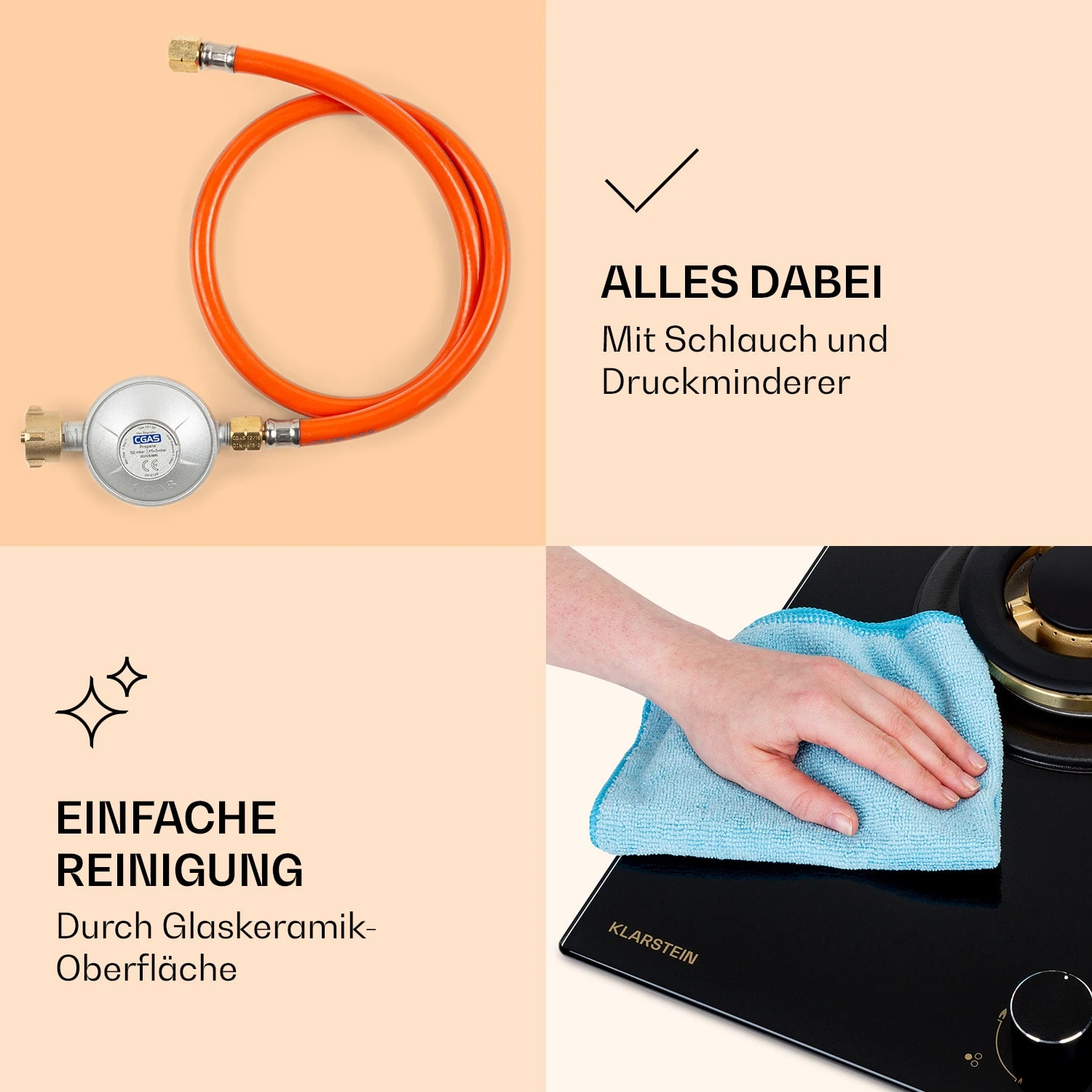 Goldflame 3 Gaskochfeld 3-flammig Messing-Brenner Glaskeramik