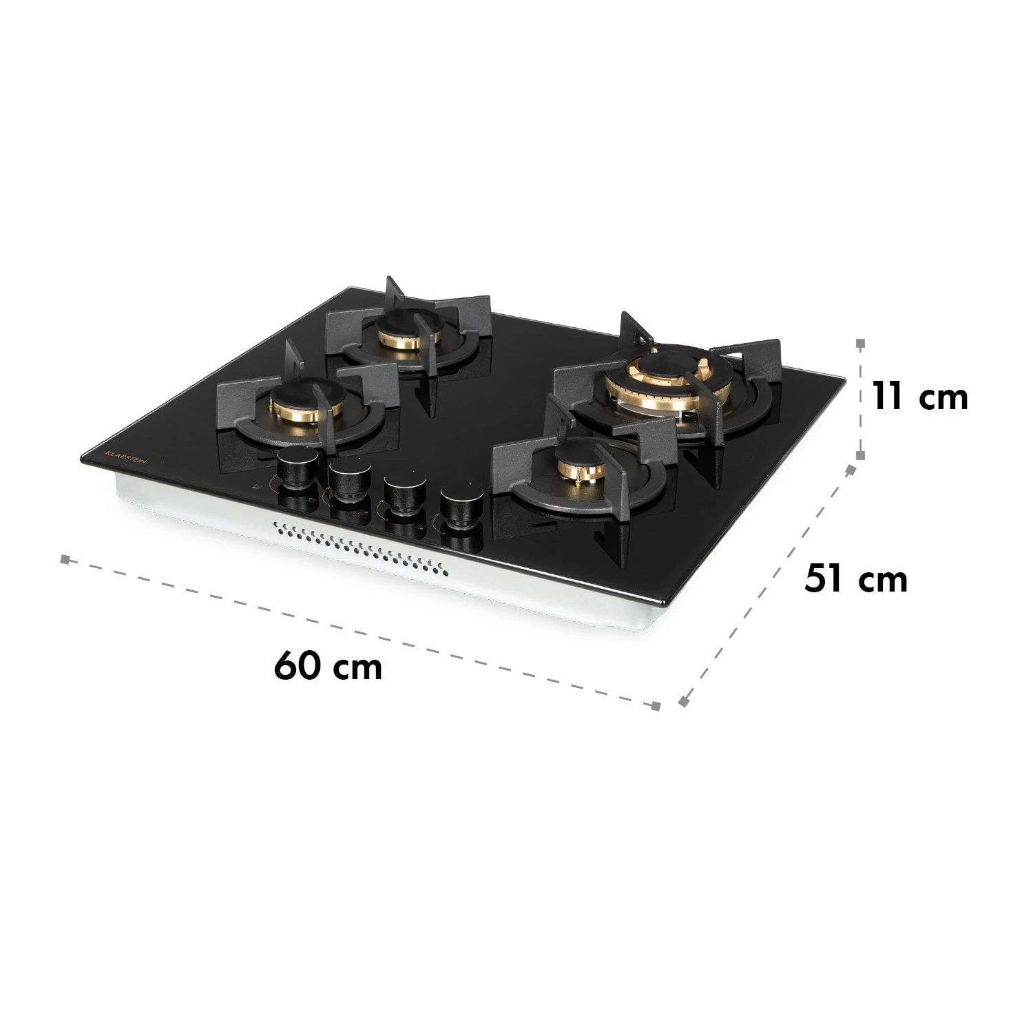 Auf dem platzsparenden Klarstein Goldflame Kochfeld befinden sich vier hochwertige Brenner, die mit einer Leistung von 3,4 kW, 2 x 1,8 kW und 1,0 kW ordentlich einheizen. Wie der Name sagt, haben wir für die Goldflame-Reihe hochwertige Messing-Brenner gewählt, da diese nicht nur edel aussehen, sondern auch eine wesentlich höhere Lebensdauer als herkömmliche Aluminiumbrenner besitzen und zugleich für eine bessere Hitzeverteilung auf dem Kochfeld sorgen. Ein Unterschied, den du sehen und spüren kannst. Alle Brenner verteilen die Hitze gleichmäßig in der Mitte und an den Rändern der Töpfe oder Pfannen, alles wird perfekt und bestmöglich gegart. Das Kreuz aus massivem Gusseisen ist für beinahe alle Arten von Kochgeschirr geeignet und sitzt passgenau und kippsicher über den Flammen. Dabei ist die Bedienung dank der selbsterklärenden Symbole an den großen Drehknöpfen absolut intuitiv, die Hitzezufuhr kann während des Kochvorgangs immer wieder direkt angepasst werden. Denn hier liegt auch der große Vorteil von Gasherden: Änderungen an der Flammengröße wirken sich unmittelbar in Temperaturänderungen an Topf oder Pfanne aus. Natürlich haben wir auch auf die Sicherheit am Herd geachtet: Zusätzliches Feuer zum Entzünden ist nicht nötig. Die Gasflamme wird einfach per SnapJetIgnition entfacht. Der Flammenausfall-Schutz schließt die Gaszufuhr zum Brenner, sollte die Flamme aus irgendeinem Grund einmal ausfallen.