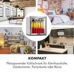 Beersafe XL Kühlschrank 60 Liter 2 Böden Doppelt Isolierte Panoramaglastür Edelstahl