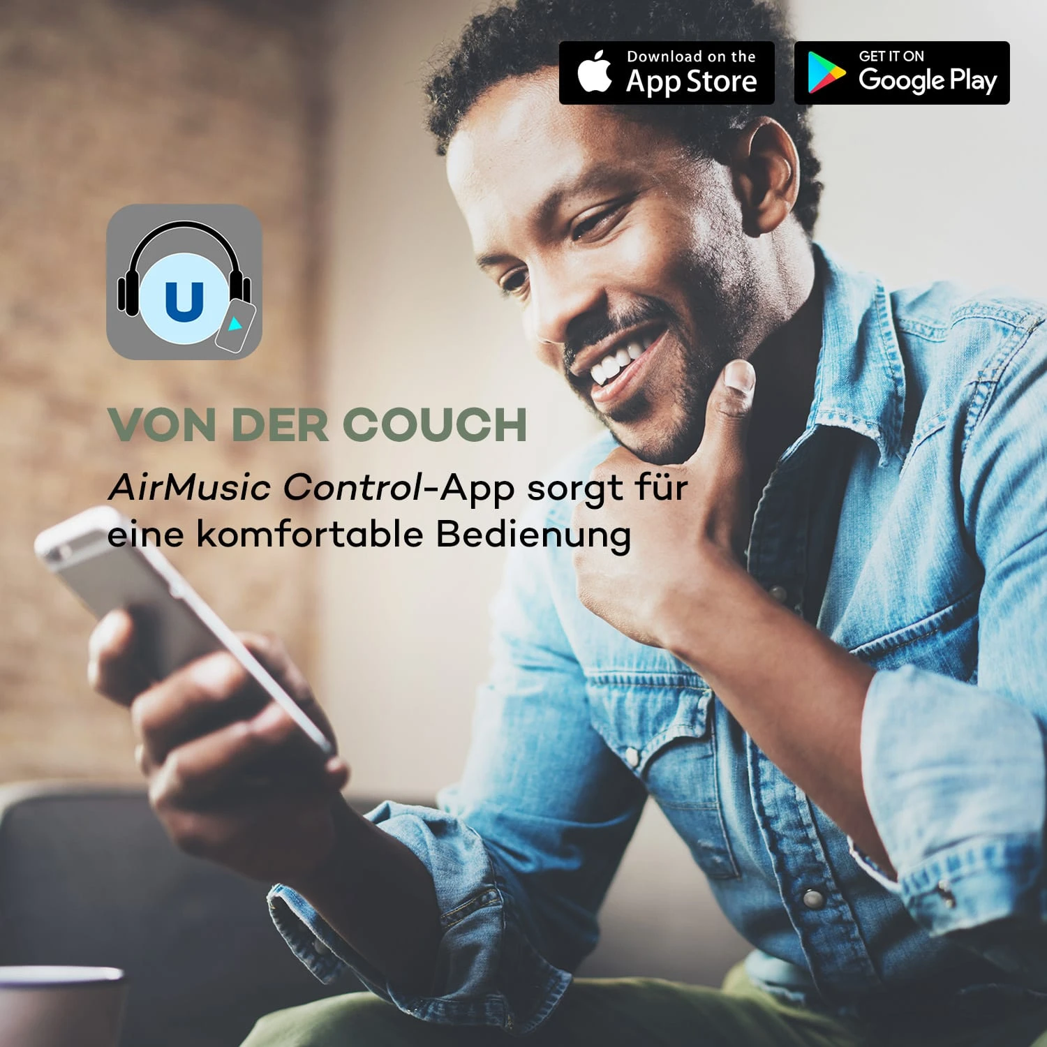 Wer gerade keine Lust auf Radio aus aller Welt hat, der kann auf zahlreiche weitere Medienquellen zugreifen. Über den rückseitigen USB-Port finden MP3- und WMA-Dateien ein williges Abspielgerät, während per Bluetooth kabellos von verbundenen Geräten wie Smartphones, MP3-Playern oder Laptops gestreamt werden kann. Per UPnP- oder DLNA-Standard können auch völlig kabellos Musiktitel von Rechnern im Netzwerk gestreamt werden. Für bequeme Steuerung sorgen die Fernbedienung im vollen Funktionsumfang sowie die Möglichkeit zur Steuerung per App ‚Air Music Control‘ von verbundenen Mobilgeräten wie Smartphone oder Tablet.