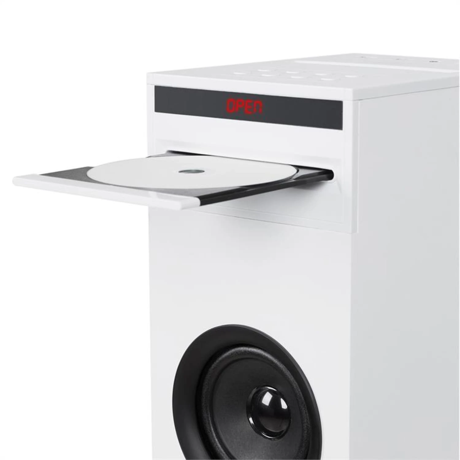 Der Karaoke-Turm nimmt beim Aufstellen kaum Platz ein und kann entweder auf vier gummierten Füßen oder einer hölzernen Bodenplatte stehen. So kann der Karaoke-Turm perfekt platziert werden.