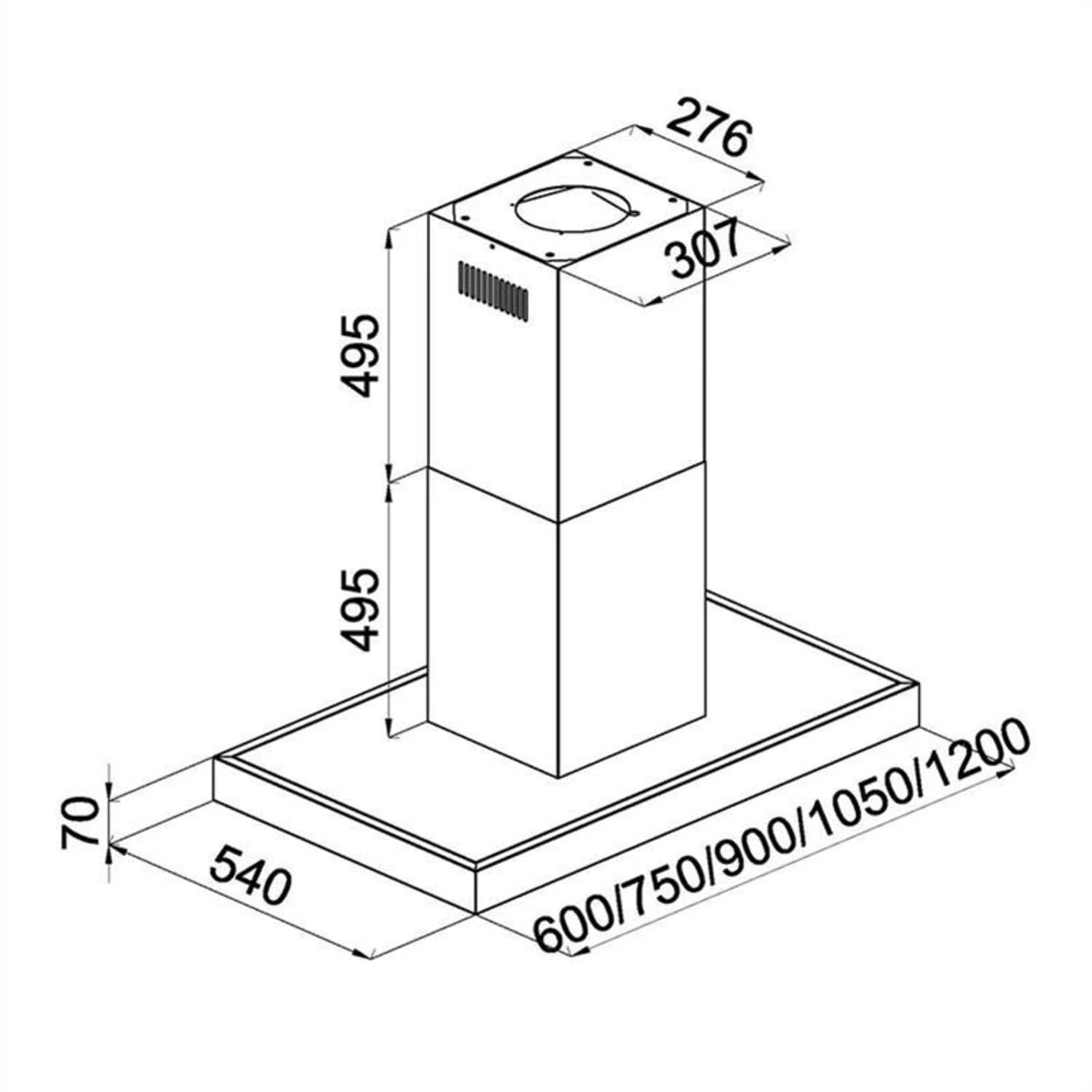 - Absaugfläche: 71 x 35,5 cm