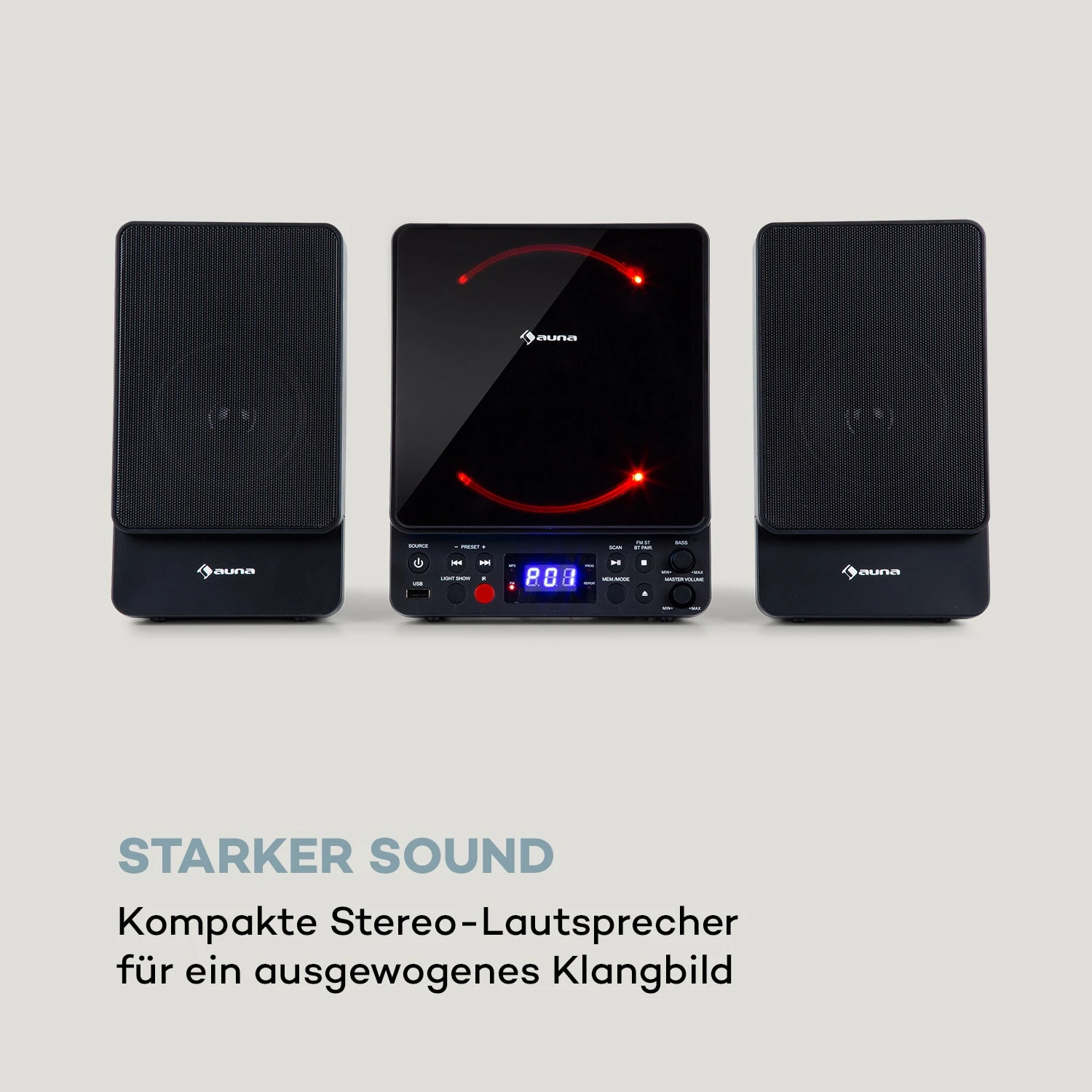 Das auna Microstar Microsystem ist eine multifunktionale All-in-one-Microanlage, die besonders wenig Platz in Anspruch nimmt und moderne Technik mit großartigem Klang verbindet.