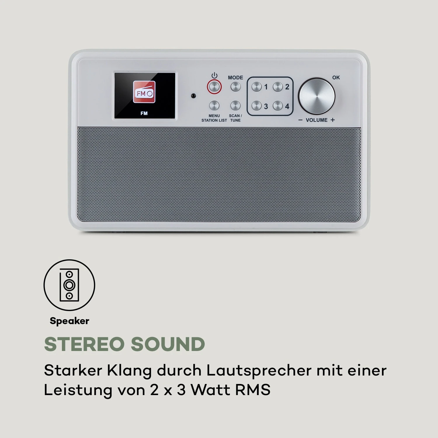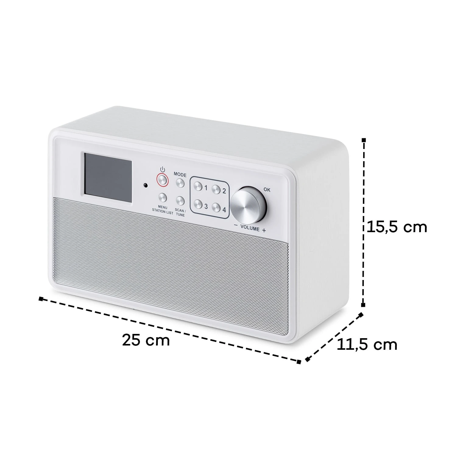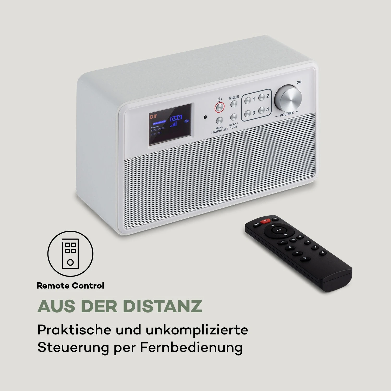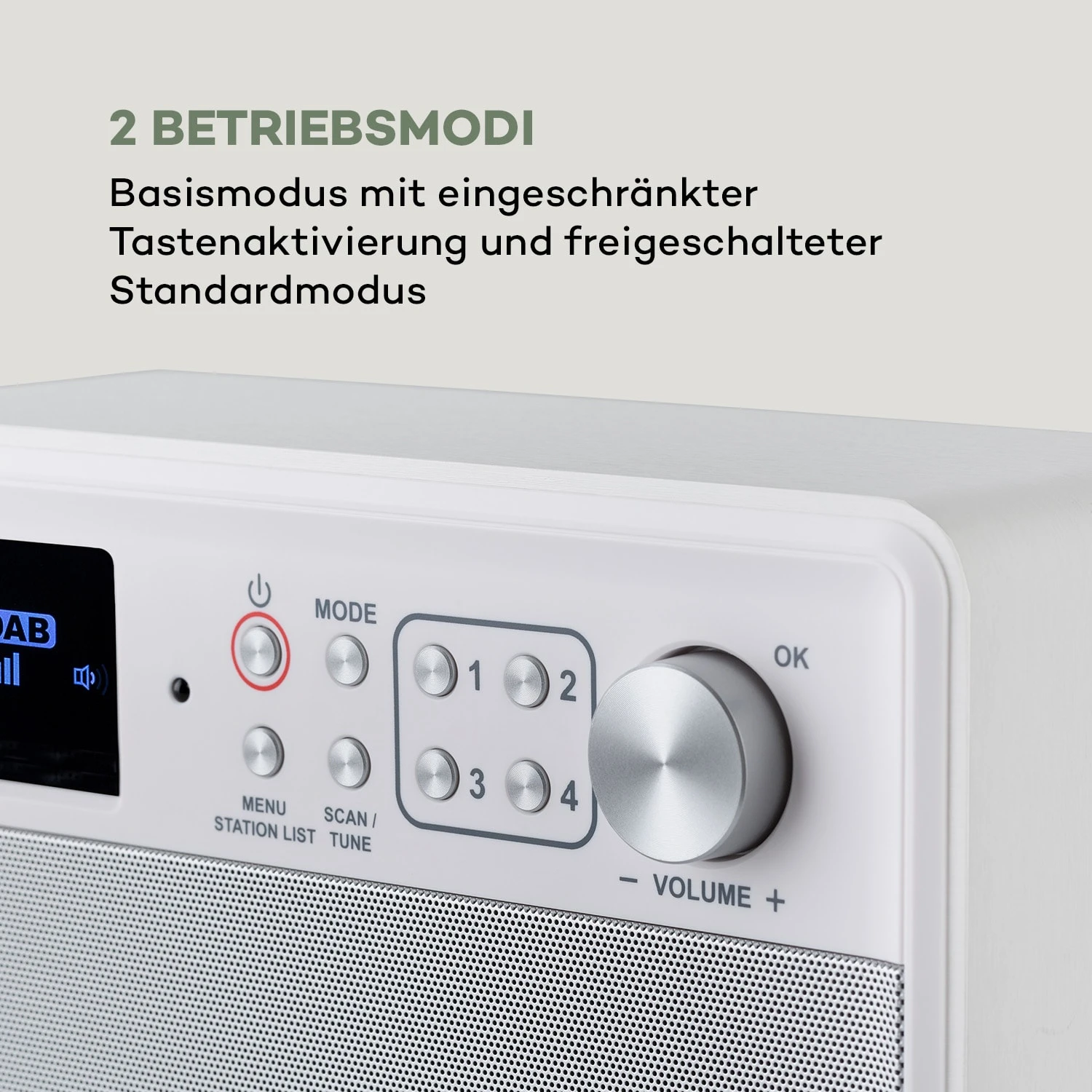 - 8 Speicherplätze für Radiosender (4 x DAB+/4 x FM)