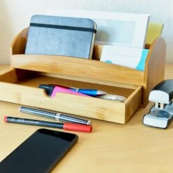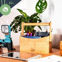 Schreibtischorganizer Tragegriff 4 Fächer 22,5x12x17cm Bambus