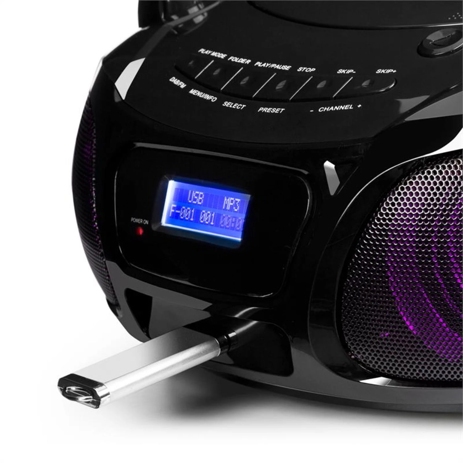 Der CD-Player spielt Audio-, MP3- und CD-RW-CDs ab, über den USB-Port können problemlos MP3-Flashdrives wiedergegeben werden. Sind gerade keine Datenträger zur Hand, liefert das integrierte DAB/DAB+– und UKW-Radio problemlos Hitsender oder die neuesten Nachrichten auf digitalem oder analogem Weg. Wem das noch nicht reicht, der kann den ebenfalls vorhandenen AUX-Eingang nutzen und das System so um weitere Audiogeräte erweitern.