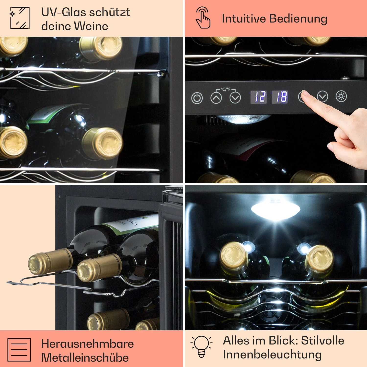 Für alle Genießer edler Tropfen: Der Klarstein Shiraz 12 Duo Weinkühlschrank bietet stilvollen Lagerplatz und ideale Kühlung für Wein, Sekt und andere Getränke.