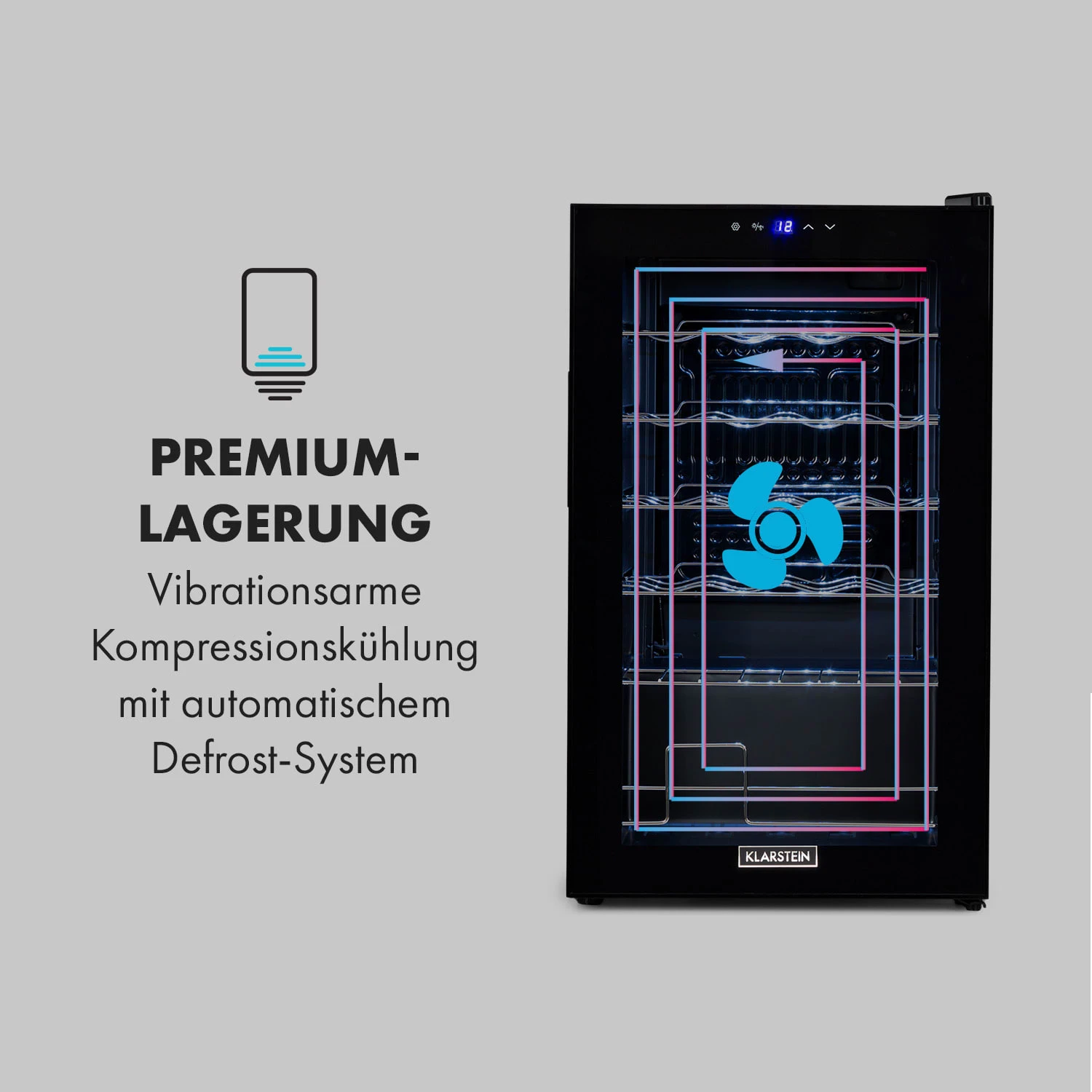 Aus Liebe zum Wein: Der Klarstein Shiraz 24 Slim Uno Weinkühlschrank sorgt für besten Weingenuss, indem er Weinflaschen die richtige Trinktemperatur verschafft. Dabei glänzt er mit seinem Slim-Design und schmiegt sich auch in kleine Lücken wundervoll ein. Bis zu 24 Flaschen Wein kannst du mit ihm optimal lagern und auf eine Trinktemperatur zwischen 5 und 18 °C kühlen. Die Fronttür aus Sicherheitsglas ermöglicht dir dabei eine wundervolle Präsentation der edlen Flaschen.