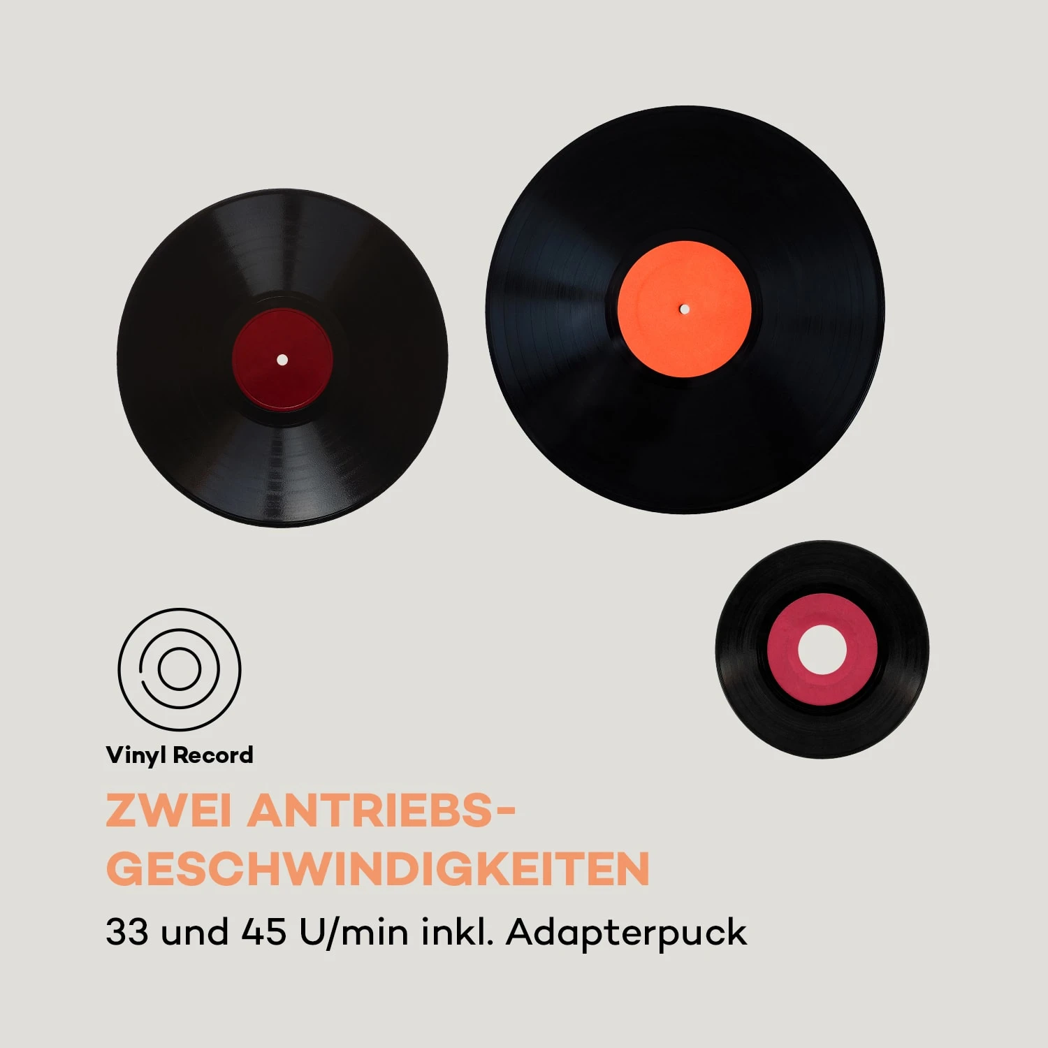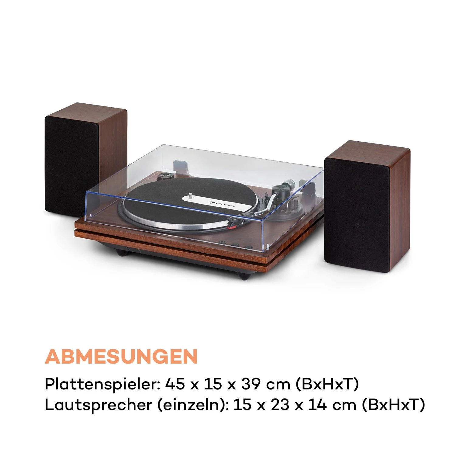 - Maße (Plattenspieler): ca. 45 x 15 x 39 cm (BxHxT)