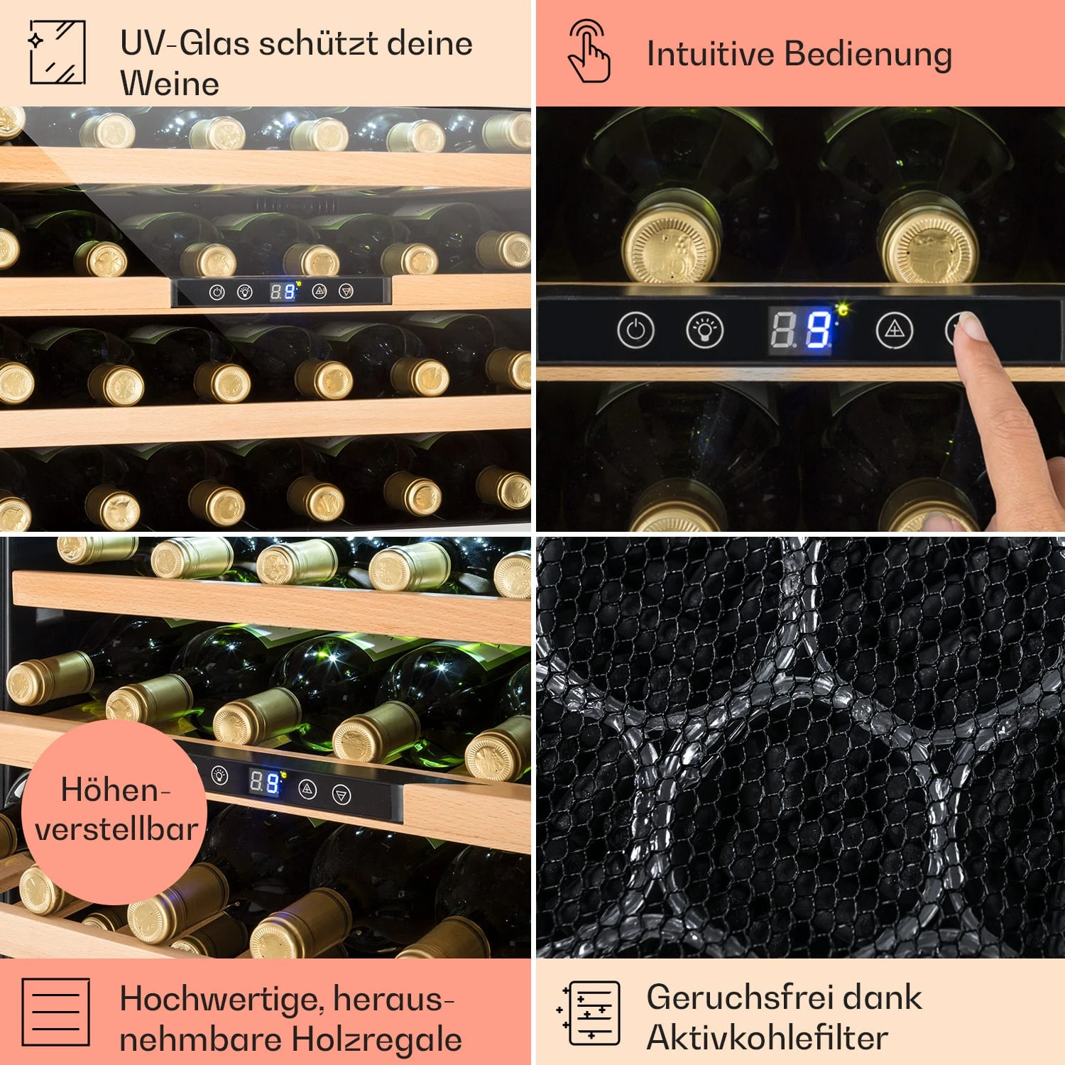Dank des Klarstein Vinsider 24 Built-In Uno Einbau-Weinkühlschranks kannst du dem Wein die idealen Bedingungen für sein volles Aroma und die perfekte Trinktemperatur bieten. Alles, was du tun musst, ist die elegante Fronttür mit dem abgedunkelten Panoramafenster zu öffnen und den Wein auf einem der 3 Holzböden zu positionieren. Dann die gewünschte Kühltemperatur einstellen und dein Weinkühlschrank von Klarstein kümmert sich um das „Weinwohlfühlklima“. Wenn du und deine Gäste den Wein genießen möchten, ist er wohltemperiert: zu jeder Zeit und direkt in deiner Nähe.